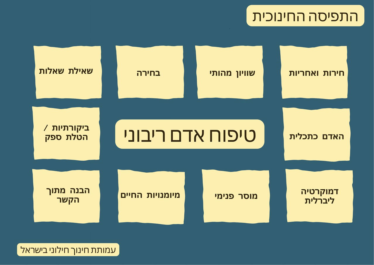 החינוך אותו אנחנו מציעים עוסק בטיפוח הילד והילדה, אזרחי העולם ואזרחי מדינת ישראל לעתיד, כאדם ריבוני, אוטונומי: על החירות והאחריות, הבחירה והשוויון, התבונה והטלת הספק המגדירים את מהותו.