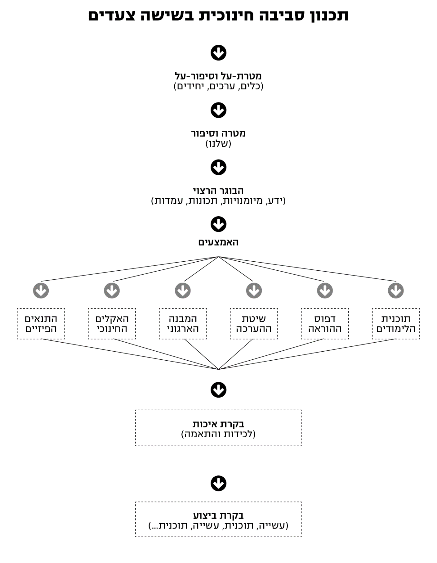 המתווה המוצע נבנה על פי מודל "תכנון סביבה חינוכית בשישה צעדים"6 של פרופ' יורם הרפז ובליוויו.